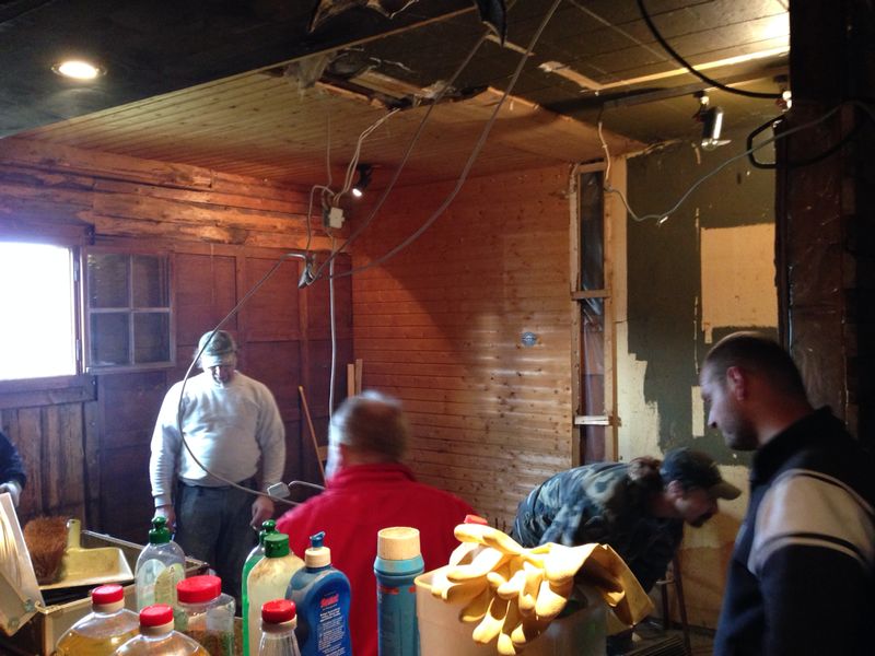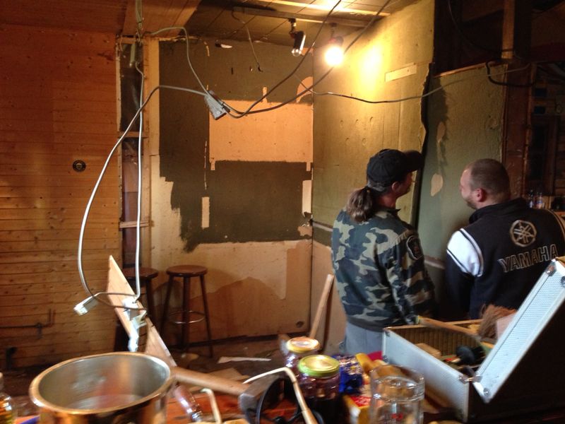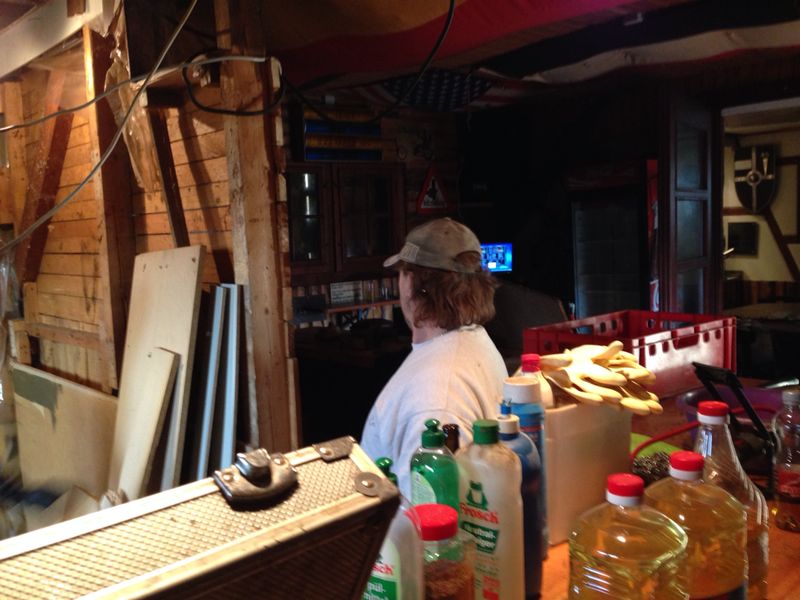 Die Alte Hütte hatte es dringend nötig, nicht nur die Isolation und die Elektrischen Leitungen wurden komplett neu gemacht, sondern auch der Kellerabgang neu gelegt und endlich ein ansehlicher Küchenbereich geschaffen. Ebenso wurde der DJ Bereich wieder wie früher in den Mittelpunkt des Raumes gelegt.